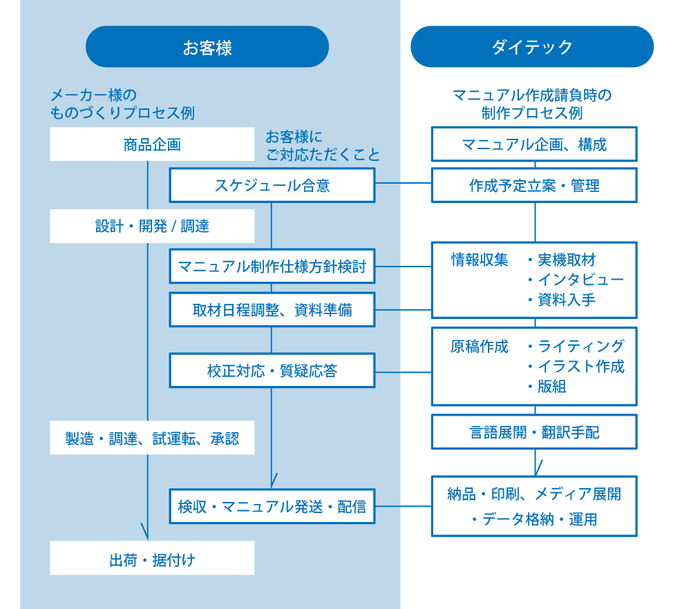 マニュアル作成プロセスにおけるお客様と当社の役割分担事例